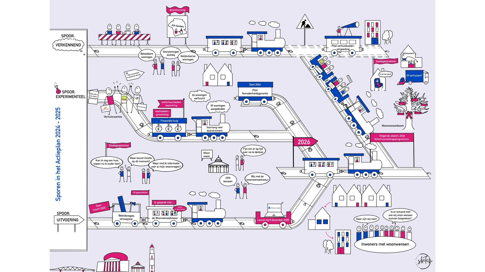Een visueel overzicht van sporen, acties en betrokken partijen